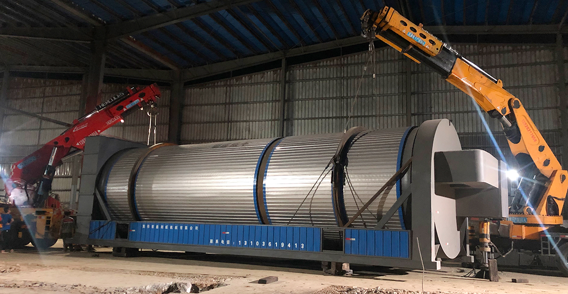 01 設備作用固廢污泥三層滾筒烘干設備,設備尺寸15.8m×4.4m×5.7m,水份65%烘干至30%,一天200t,內層316L不銹鋼,利雅路天然氣燃燒機供熱。